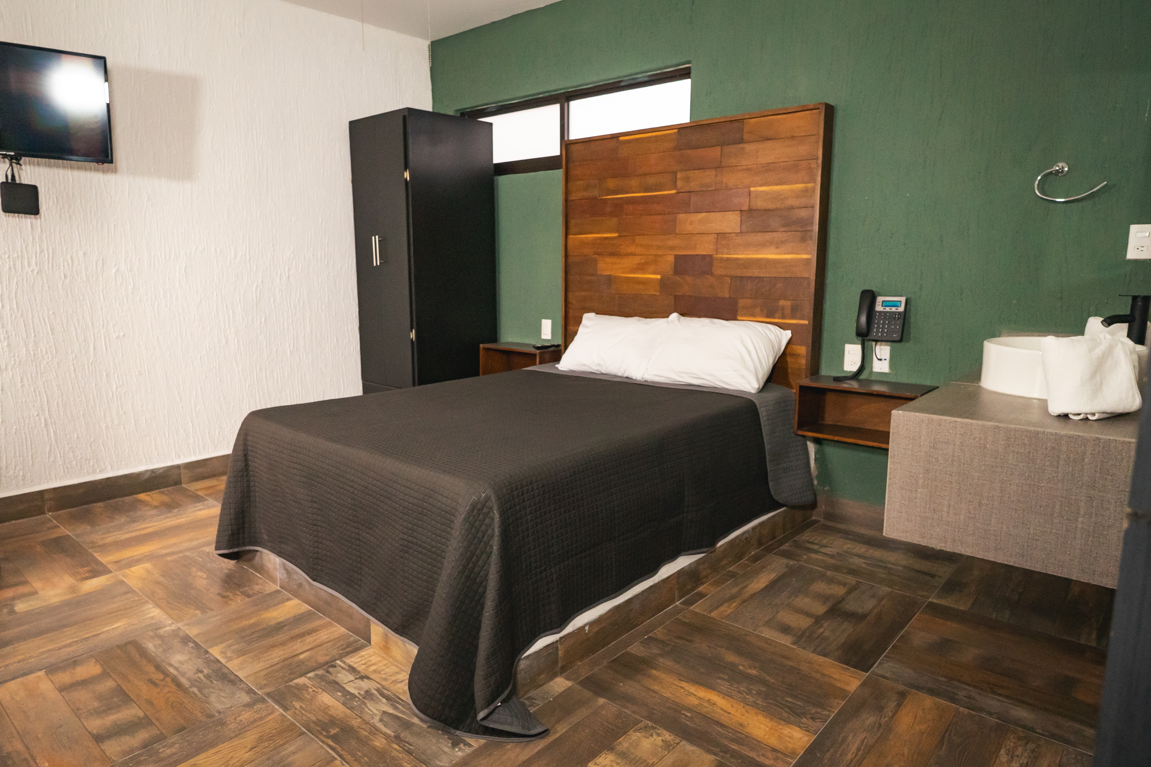 Contamos con habitaciones sencillas y dobles, Wi-Fi de alta velocidad en todas las instalaciones, cafetería disponible las 24 horas y estacionamiento a 30 metros del hotel. Estamos ubicados a 70 m del Boulevard Adolfo López Mateos, a 100 m del Hospital Aranda de La Parra, a 150 m de la Basílica Catedral y a 500 m de la Plaza Principal.